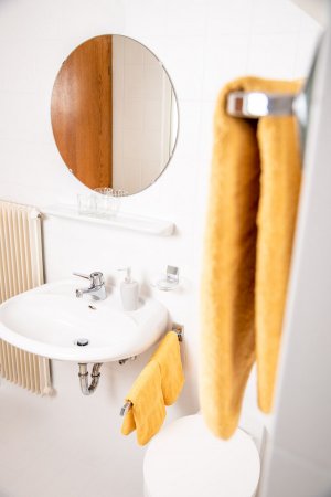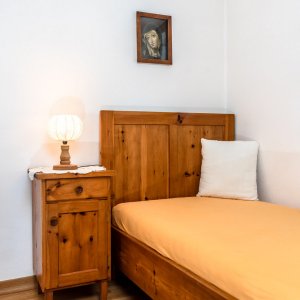 Die 55m² große Wohnung befindet sich im 1. Stock und verfügt über ein Doppelbettzimmer, ein kleines Einbettzimmer getrennt vom Wohnzimmer durch einen Vorhang, ein geräumiges Wohnzimmer mit einer ausziehbaren Doppelcouch, eine gut ausgestattete Küche, ein Bad und einen Südbalkon. Die Wohnung gibt Ihnen eine wohlige, warme Atmosphäre.
