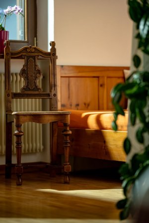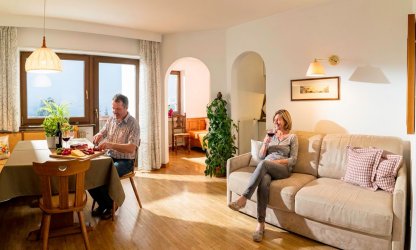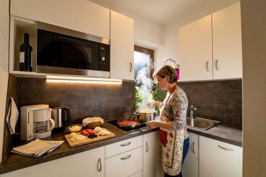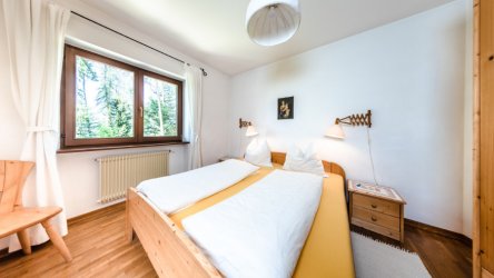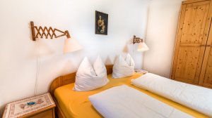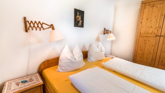 Die 55m² große Wohnung befindet sich im 1. Stock und verfügt über ein Doppelbettzimmer, ein kleines Einbettzimmer getrennt vom Wohnzimmer durch einen Vorhang, ein geräumiges Wohnzimmer mit einer ausziehbaren Doppelcouch, eine gut ausgestattete Küche, ein Bad und einen Südbalkon. Die Wohnung gibt Ihnen eine wohlige, warme Atmosphäre.